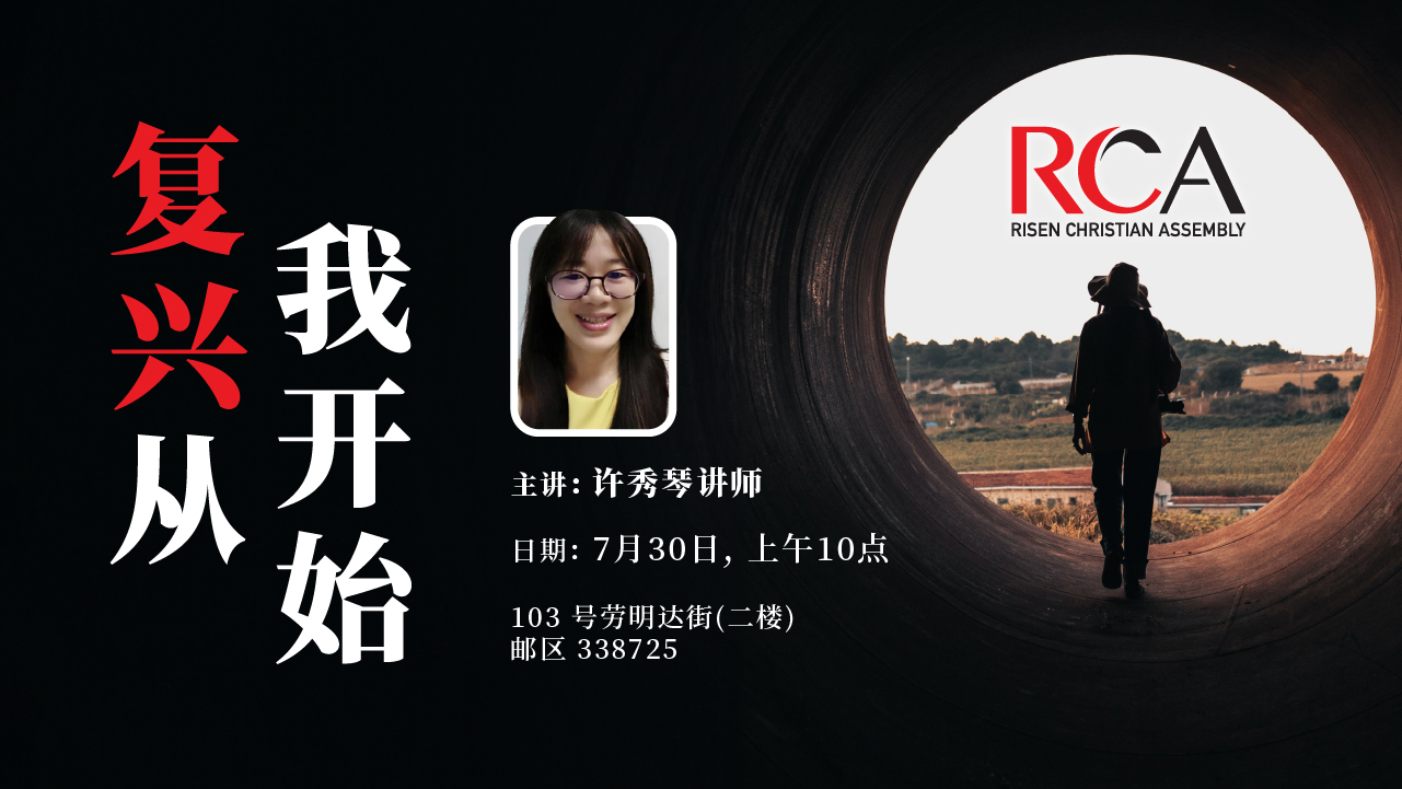 上上帝爱世界的每一个人,渴望他们悔改。 悔改是复兴的关键,让上帝更新自己,改变心灵和思想,顺服祂的旨意。 来临星期天,许秀琴讲师将带领我们从约拿书看尼尼微的复兴,让我们也开始兴。 现场上午十点 在 103号劳明达街, 二楼, 邮区338725