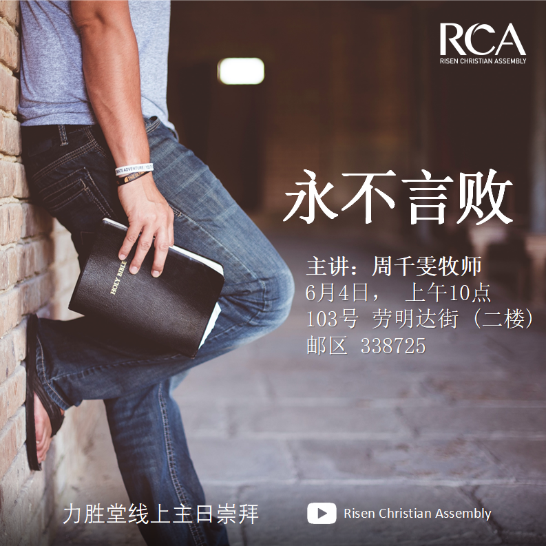 来临星期天,让周牧师带领我们认识这力量的源头,从中支取能力。