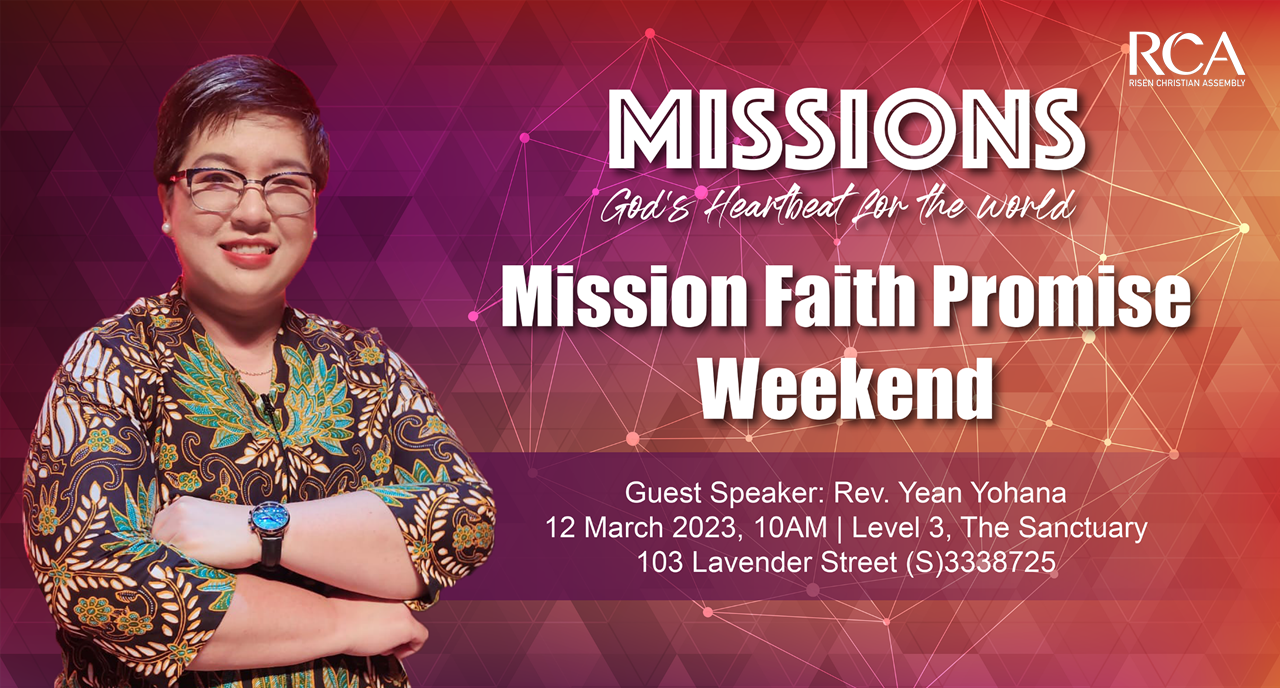 Join us in this Missions Faith Promise Sunday as Rev. Yean Yohana speaks on finishing the task of the Great Commission.
