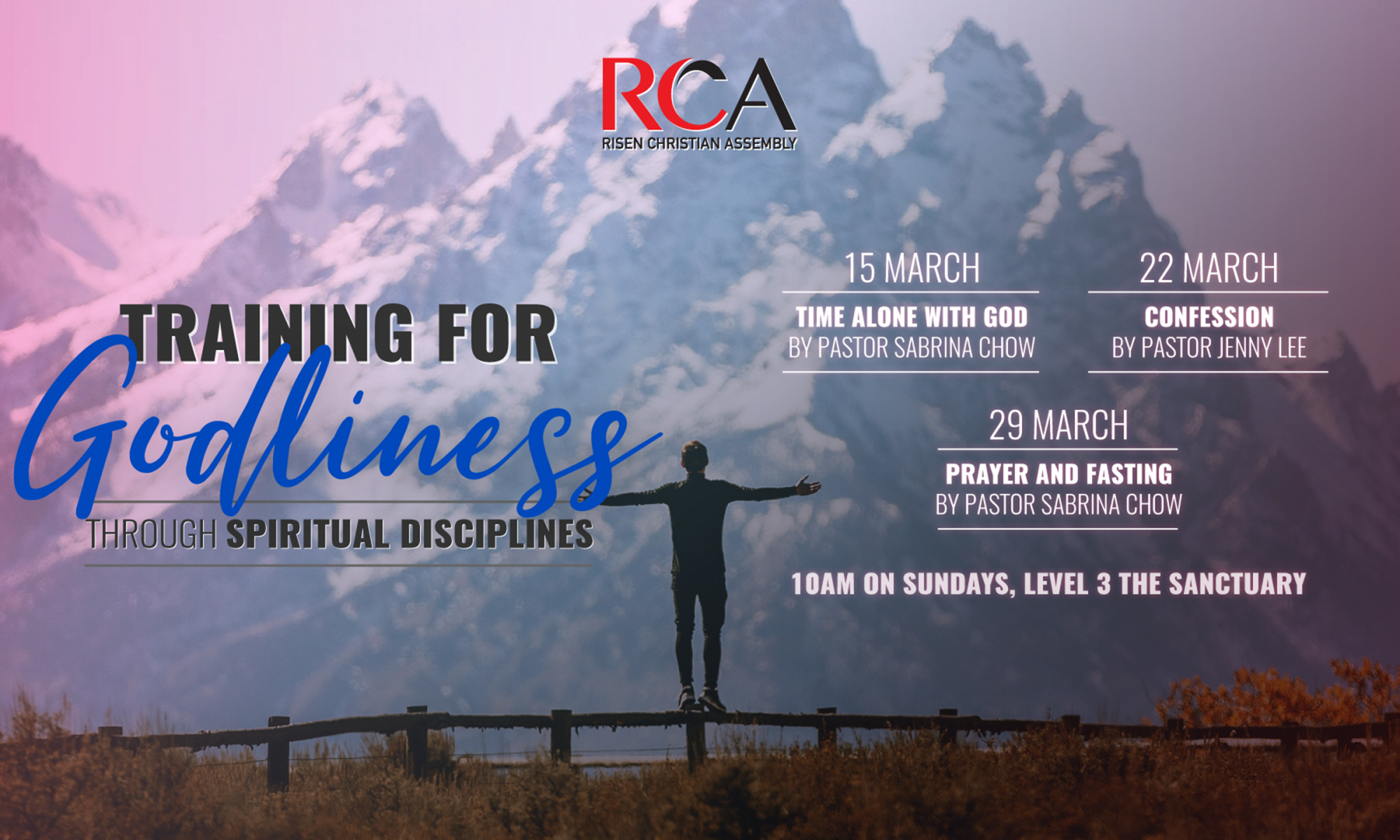 15mar10:00 am11:30 amSunday Service - Training for Godliness Through Spiritual Disciplines - Time Alone with GodSpeaker: Pastor Sabrina Chow10:00 am - 11:30 am Risen Christian Assembly, The Sanctuary, Level 3